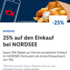 Bis zum 11.6.23 gibt es 25% Rabatt bei einem Einkauf ab 10 EUR in den Nordsee Restaurants bei Aktivierung des Rabatts in der Lidl Plus App