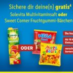 Ab Freitag, 29. Oktober bis zum 31. Oktober bekommt ihr bei Lidl entweder einen Solevita Multivitaminsaft oder eine Tüte Sweet Corner Fruchtgummibärchen der Sorte eurer Wahl gratis zum Einkauf von mindestens 10 € dazu .