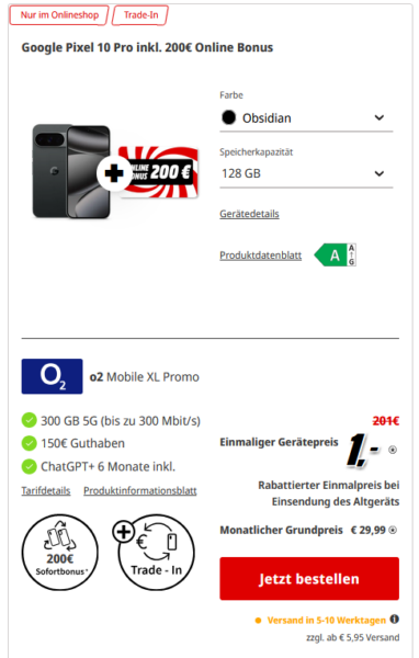 201€ wird zu -> Einmaliger Gerätepreis 1€