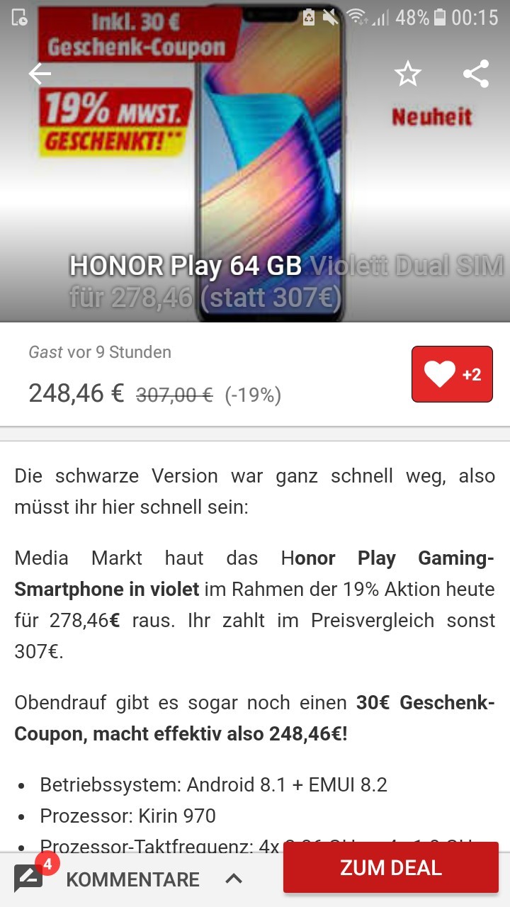 dennis7528 22.09.2018, 00:15Wollte nur darauf hinweisen das der Preis im deal 307€ und dann endpreis 248€ nicht stimmt ✌