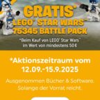 +6 Zum Deal Gratis Lego Star Wars Battle Pack 75345 zum Kauf von Lego Star Wars ab 50 € von: dealy33 von: dealy33 Gratis Lego Star Wars Battle Pack 75345 zum Kauf von Lego Star Wars Artikeln im Wert von mindestens 50 € bei Smyths Toys noch bis 15.09.2025 oder so lange der Vorrat reicht.