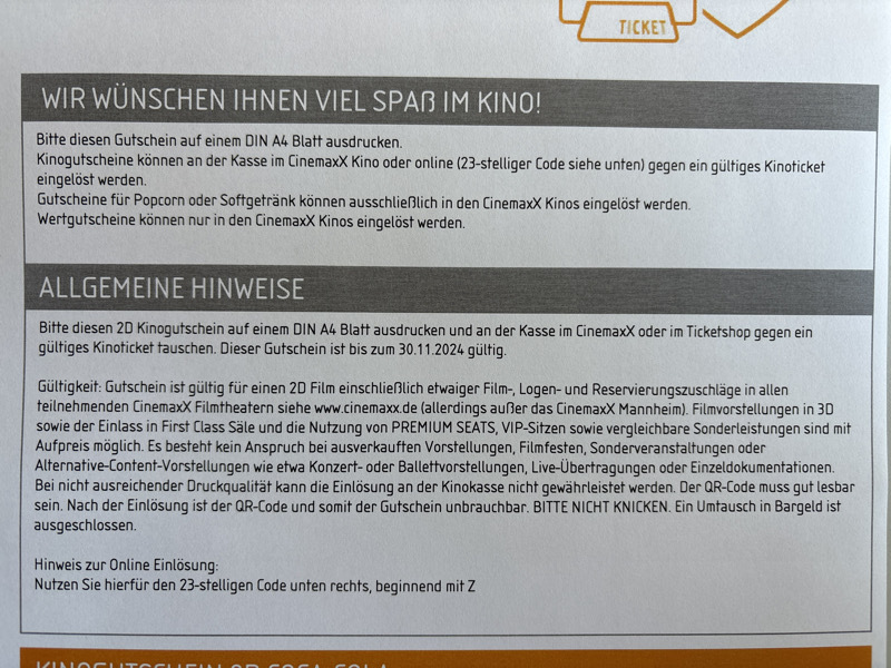 wobei der Gutschein im Text keine Bezug zum Film hat, eine Einschränkung kann man nicht lesen.